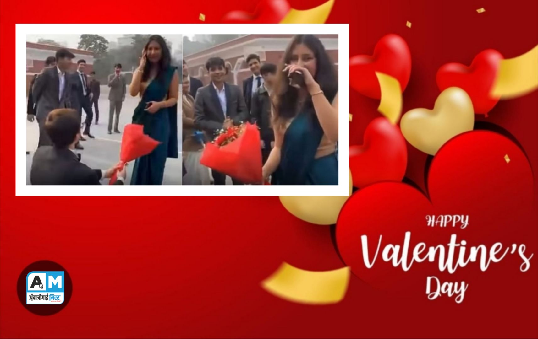 टीम AM : ‘व्हॅलेंटाईन डे’ च्या निमित्ताने सोशल मीडियावर एक वेगळाच व्हिडीओ सध्या जोरदार व्हायरल होतोय. या व्हिडीओमध्ये एका विद्यार्थ्याने आपल्या शिक्षिकेला सर्वांसमोर प्रपोज केलंय. या व्हिडीओमध्ये त्याच्या मित्रांचा गोंगाट, ‘Yes किंवा No’ अशी सततची मागणी आणि शिक्षिकेचं अनपेक्षित उत्तर यामुळे हा व्हिडीओ सोशल मीडियावर चांगलाच धुमाकूळ घालतोय.